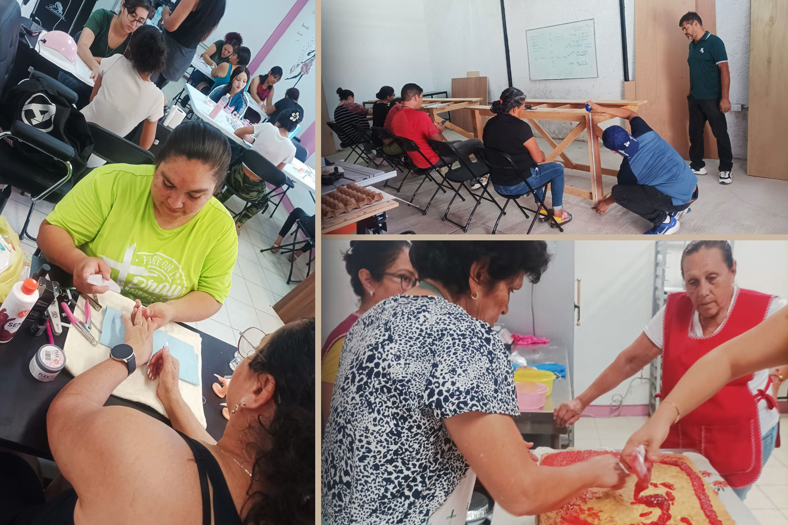 Gracias a la participación de nuestra comunidad, hemos visto grandes avances en talleres como repostería, manicure y pedicure, aplicación de uñas y carpintería, dónde jóvenes y personas adultas están desarrollando habilidades que les brindan nuevas oportunidades de crecimiento personal y laboral.