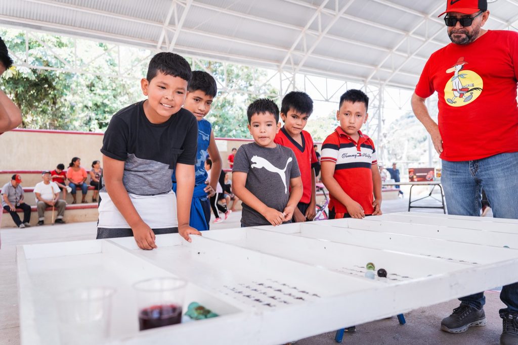 En esta ocasión, la jornada llenó de alegría a las localidades de El Cuarenteño y Palapitas, donde las y los pequeños disfrutaron de una feria de juegos, entrega de dulces, rifas de juguetes y bicicletas.
